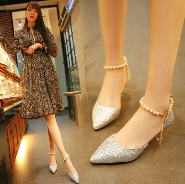 Yaz ayakkabı modası oldukça geniş bir alan. Bir tarafta topuklu sandaletler diğer tarafta düz sandaletler. Düz sandaletlere geçmeden önce sizlerin dikkatini bir tane daha yazlık ayakkabı modeline çekmek istiyoruz. Oldukça kadınsı olan bu model galerimizde bulunan parıltılı ve incili ayakkabı modelidir. Günlük kullanım için biraz fazla gelse de özellikle gece dolaşmasında tavsiye ettiğimiz bir model. Parıltılı olduğu için dikkat çekici ancak inci bileklik kısmıyla bu göz alıcılık daha çok kadınsı bir dokuya sahip olmuştur. İnce ve yüksek olmayan topuğu ayağınızı fazla rahat ettirmeyebilir bu yüzden uzun süreli kullanım yerine daha kısa sürecek ve ayağınızın üzerinde sürekli durmayacağınız etkinlikler için daha rahat olacaktır. Üstüne ise modeldeki gibi dökümlü bir elbise giymek isteyebilirsiniz.